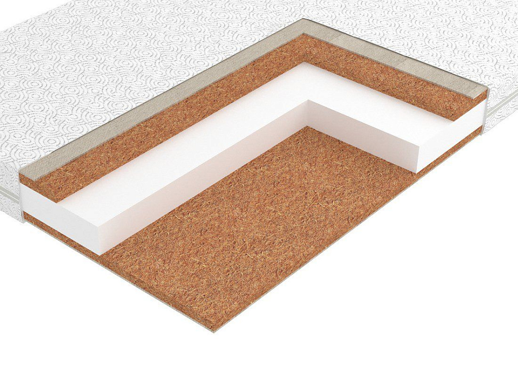 Натуральный гипоаллергенный материал. Благодаря пропитке из натурального латекса, волокна прочно скреплены в цельную плиту. Кокосовое волокно придает матрасу жёсткость и обладает бактерицидными свойствами. Производство – Enkev, Польша.