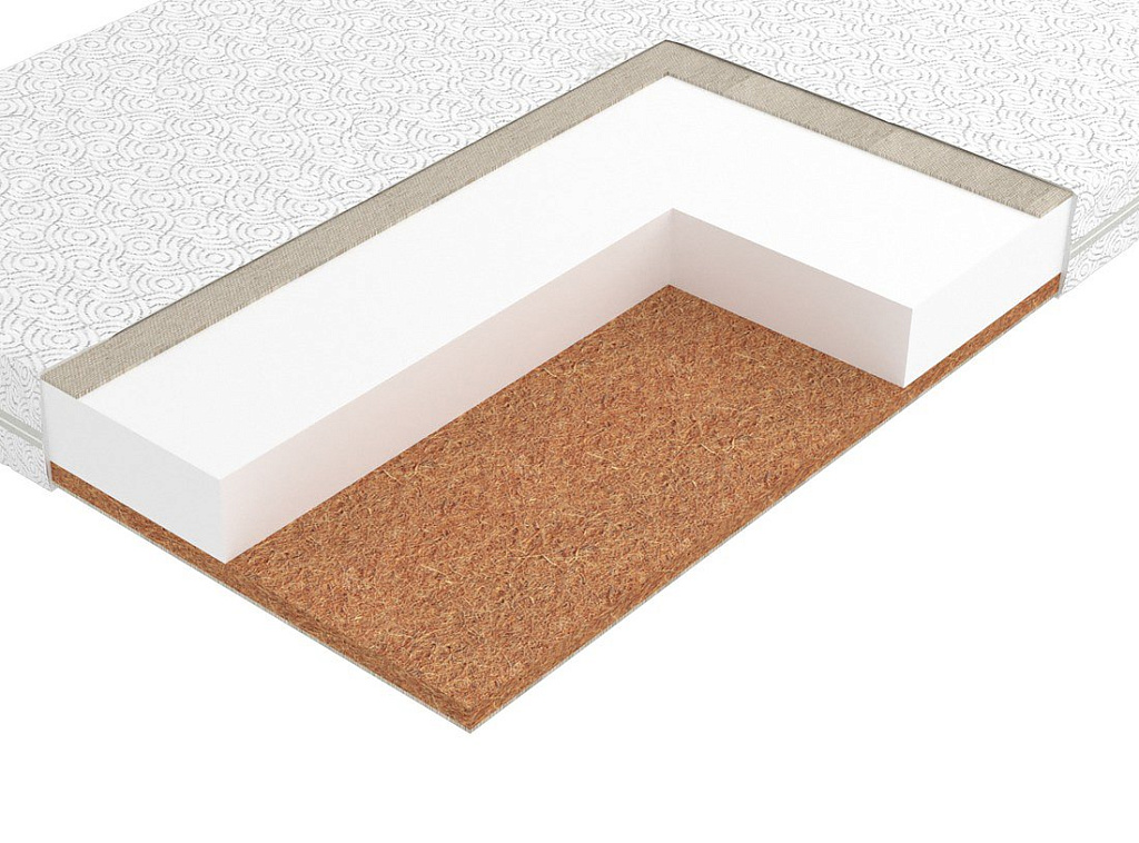 Натуральный гипоаллергенный материал. Благодаря пропитке из натурального латекса, волокна прочно скреплены в цельную плиту. Кокосовое волокно придает матрасу жёсткость и обладает бактерицидными свойствами. Производство – Enkev, Польша.