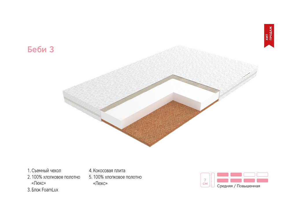 | Материал | Кокосовая койра, Хлопковое полотно, Чехол, FoamLux |
