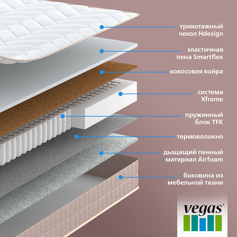 Натуральный материал из спрессованных волокон кокосового ореха, пропитанных латексом. Используется для придания матрасу жесткости.