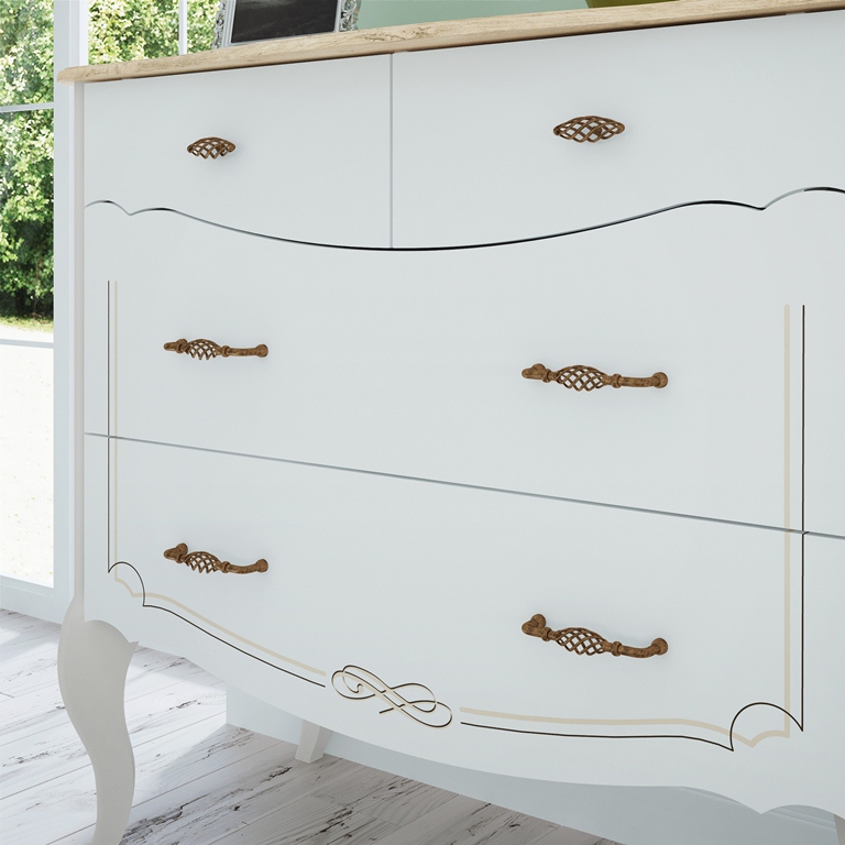Направляющие для выдвижных ящиков бесшумного закрывания. Фигурные опоры окрашены эмалью «Слоновая кость».