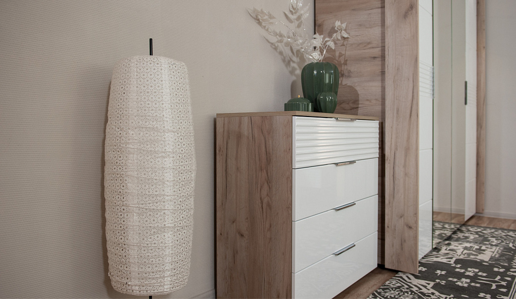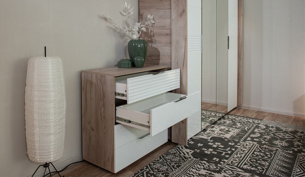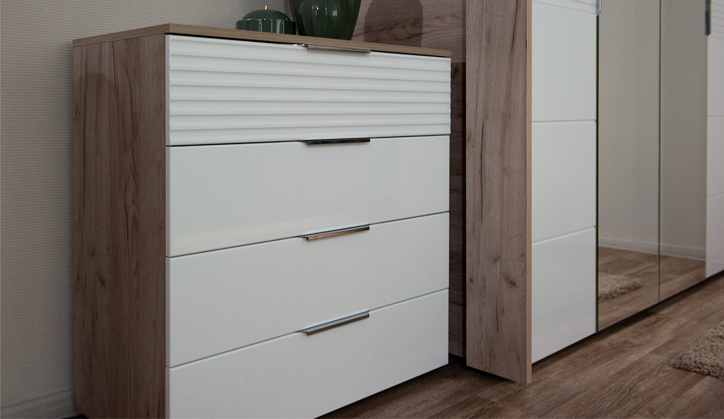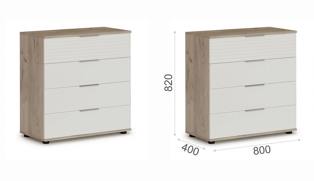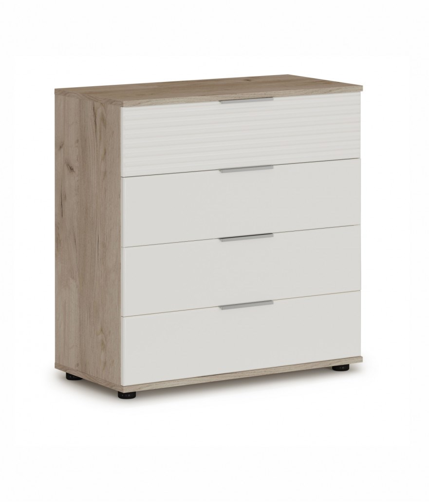 Комод 4ящ Джулия Крафт серый/Белый глянец