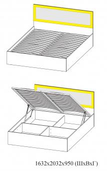 1) Ортопедическое основание с деревянным каркасом размером1600х2000 мм. 2) Ортопедическое основание с подъемным механизмом №2. Подъемный механизм крепится непосредственно на царгам кровати, поэтому с внешней стороны будут видны головки болтов.