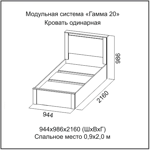 Кровать 46507 Гамма-20 Сандал