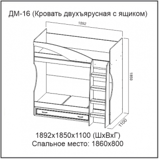 Кровать двухъярусная с ящиком 00-00103031 Вега Серия №2