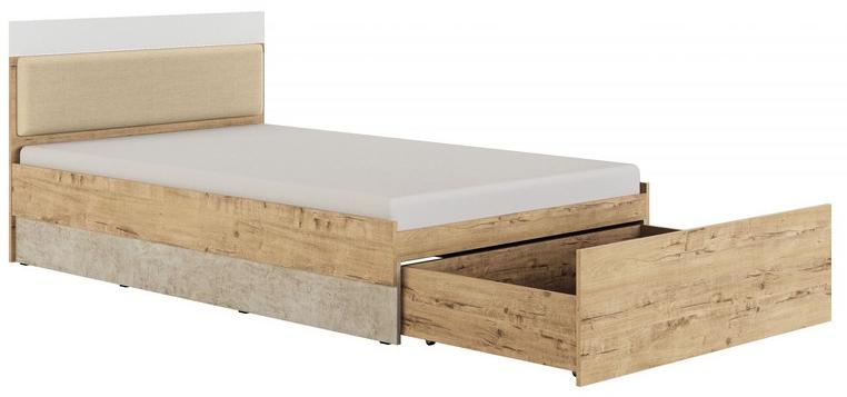 Вставка на спинке кровати: бежевый текстиль. Комплектуется выдвижным ящиком.
