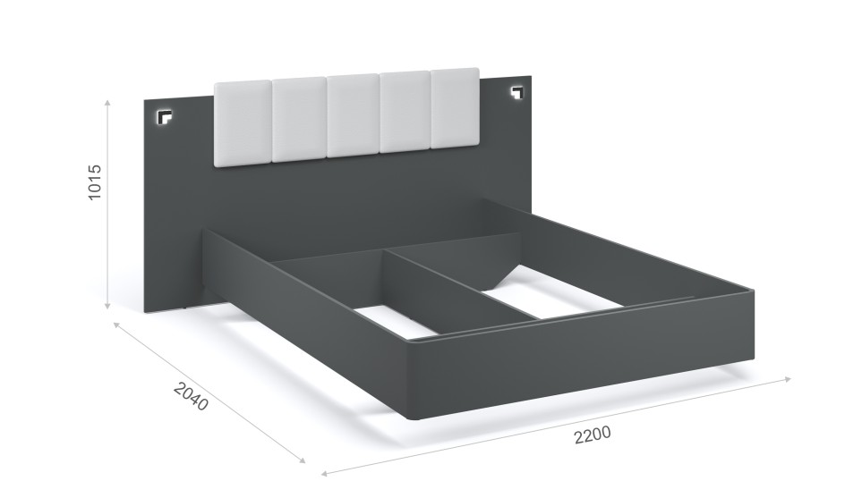 Кровать МИ 160 без ламелей Мишель Антрацит/Белый жемчуг