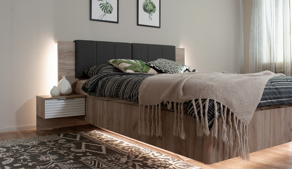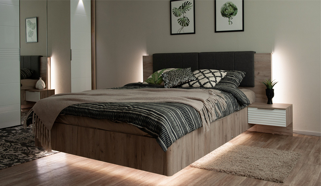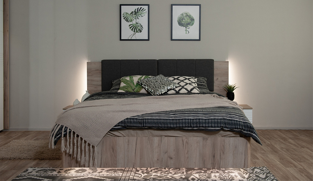 Кровать МИ 180х200 без ламелей Джулия Крафт серый/Белый глянец