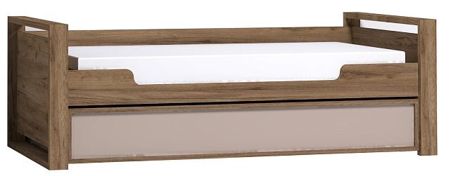 Детская или подростковая кровать-тахта с большим ящиком глубиной 182 мм на выкатных роликах. Его можно использовать как место для хранения постельного белья или как дополнительное спальное место для незапланированных гостей. Для полноценного спального места достаточно убрать разделитель и положить матрас. Размер матраса для основного спального места 190х90 см. Размер матраса для дополнительного спального места: 190х80 см, высотой до 18 см. Дополнительные боковые ниши в кровати помогут подростку держать под рукой необходимые перед сном вещи. Бонусом для современных детей станет компактная встроенная в кровать USB зарядка для телефонов и планшетов.