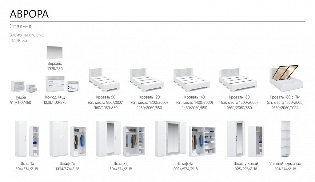 Кровать с основанием 120х200 Аврора Белый/Ателье светлый