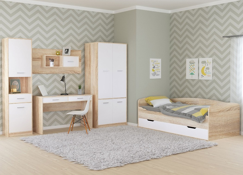 Кровать-Топчан 90 с основанием Стелс Сонома/Белый