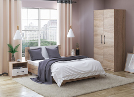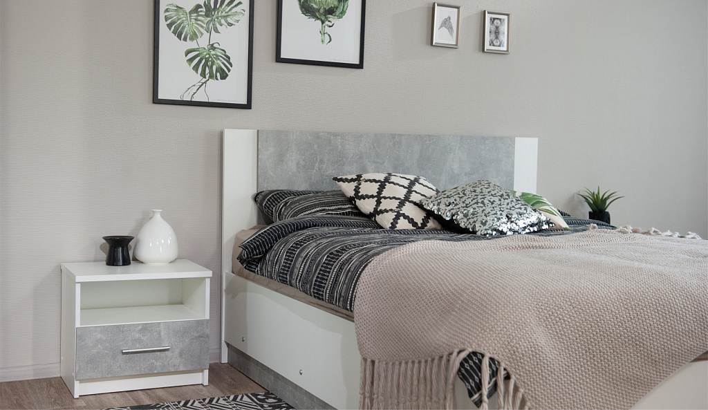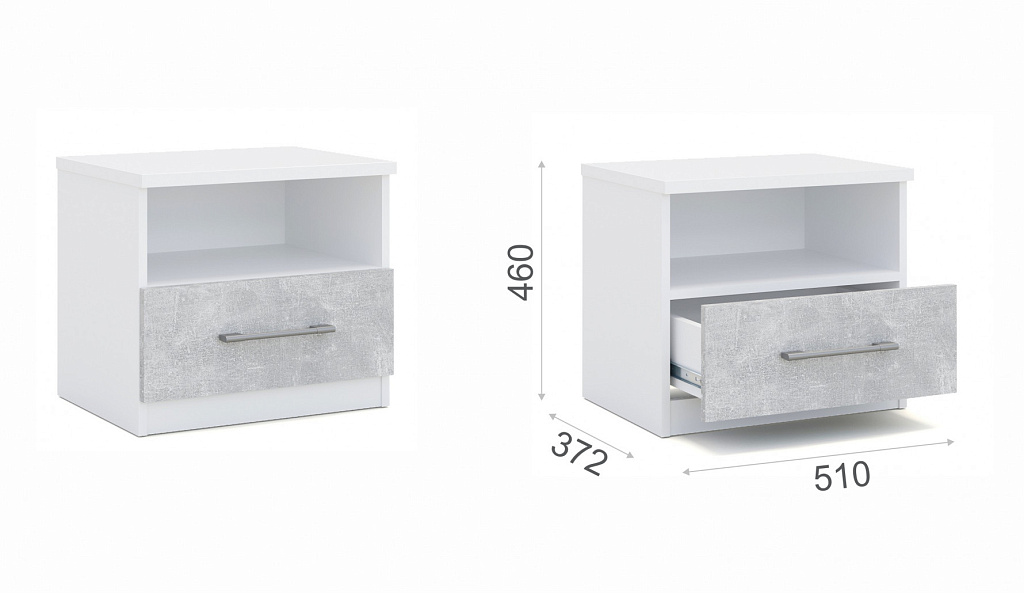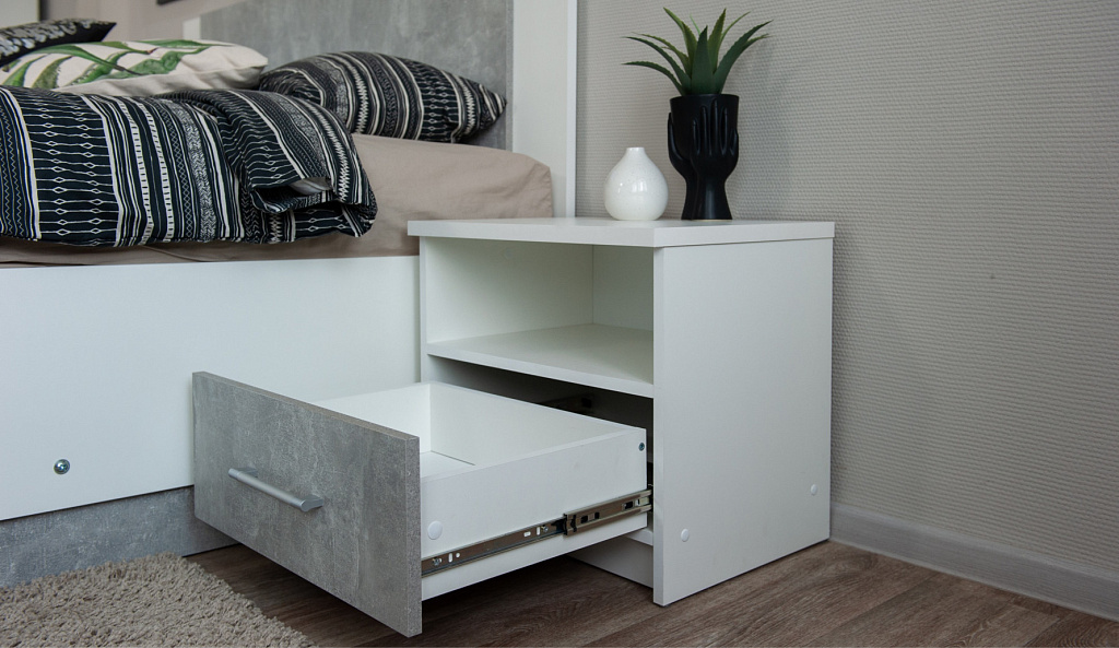 Прикроватная тумбочка (2 шт) Аврора Белый/Ателье светлый