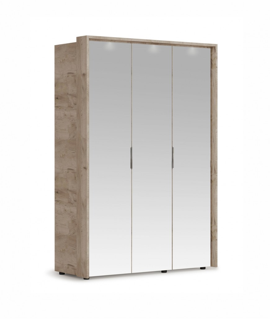 Распашной шкаф 3дв (3 зерк) с порталом Джулия Крафт серый/Белый глянец