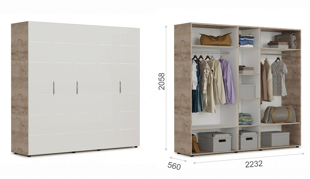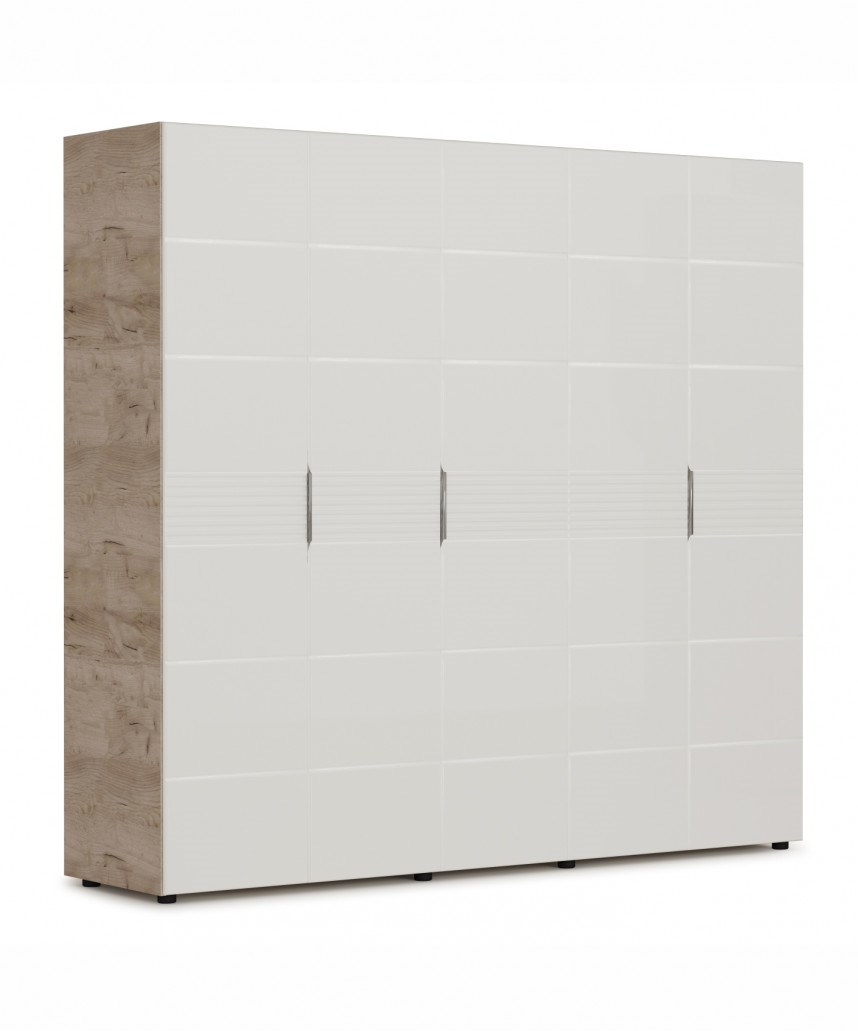 Распашной шкаф 5дв (ДДДДД) Джулия Крафт серый/Белый глянец