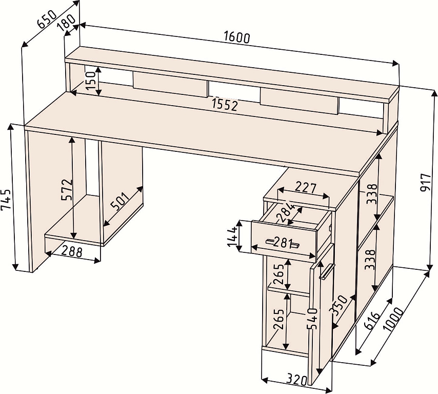 Столешница: 22мм.