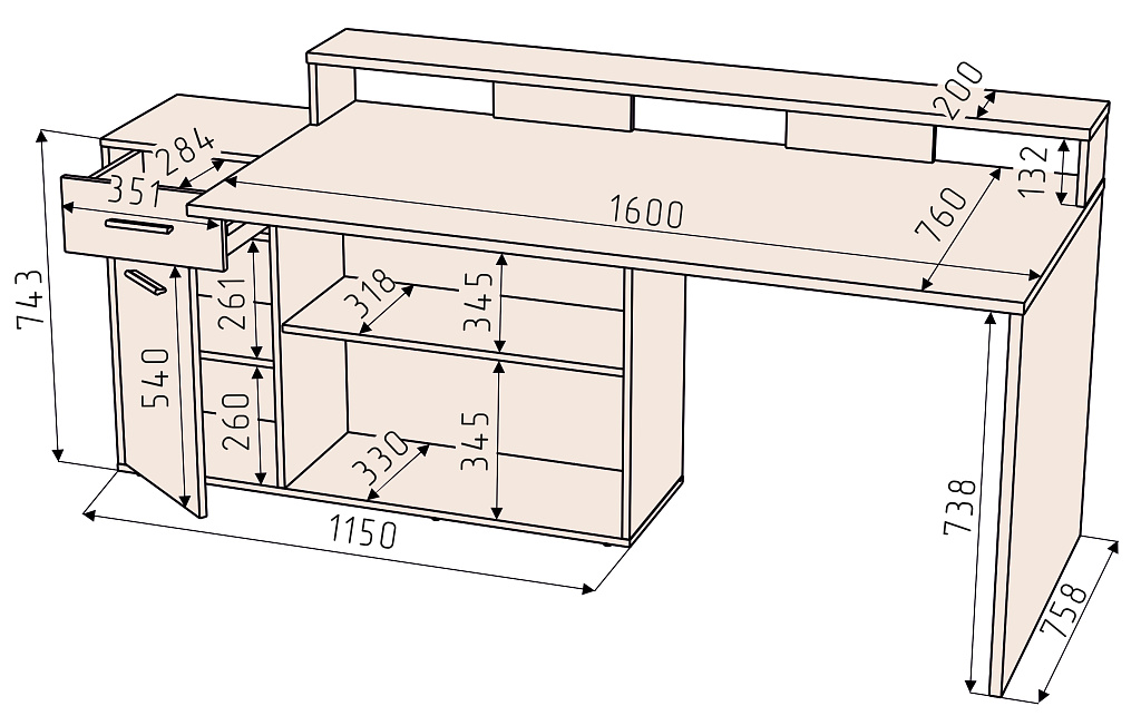 Столешница: 22мм. Направляющие шариковые. Ручка С24 матовый чёрный. Мебельные опоры.