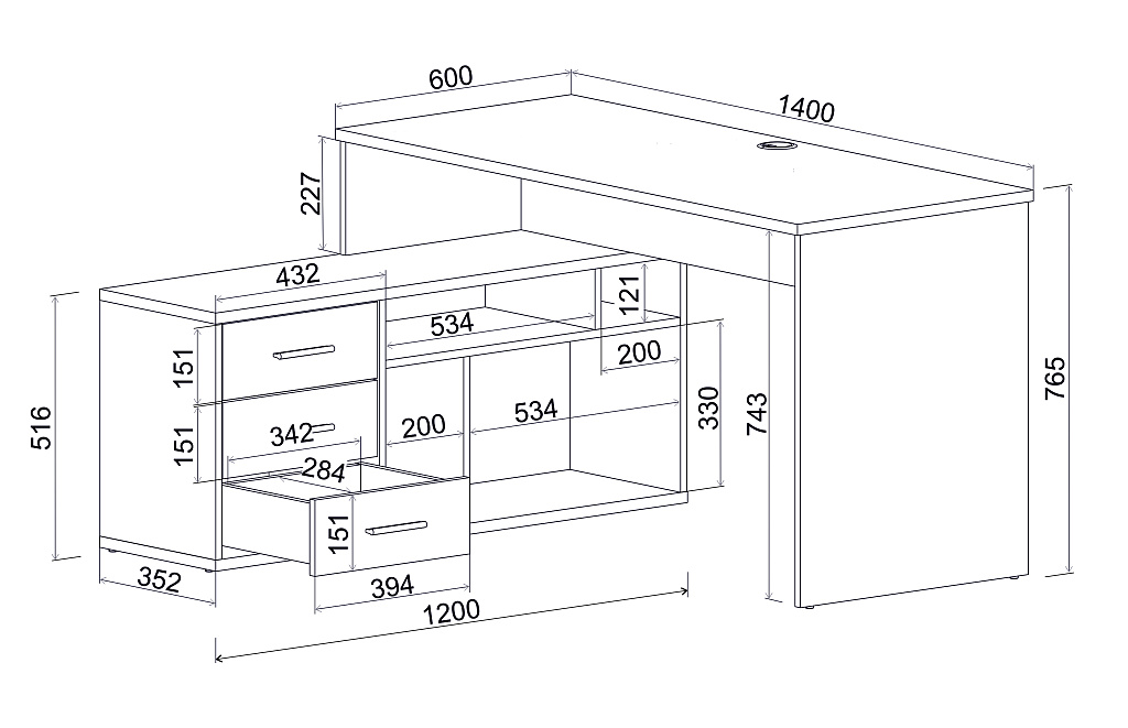 Столешница: 22мм. Направляющие шариковые. Ручка С24 матовый чёрный. Мебельные опоры.