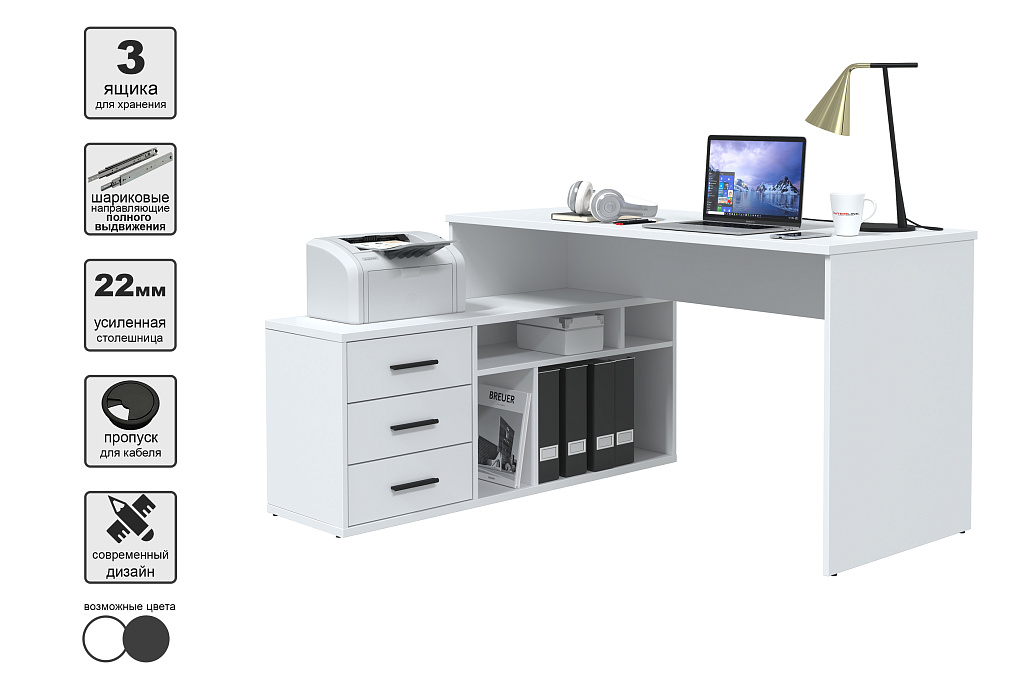 Столешница 22мм. Направляющие шариковые. Ручка С24 матовый чёрный. Мебельные опоры.