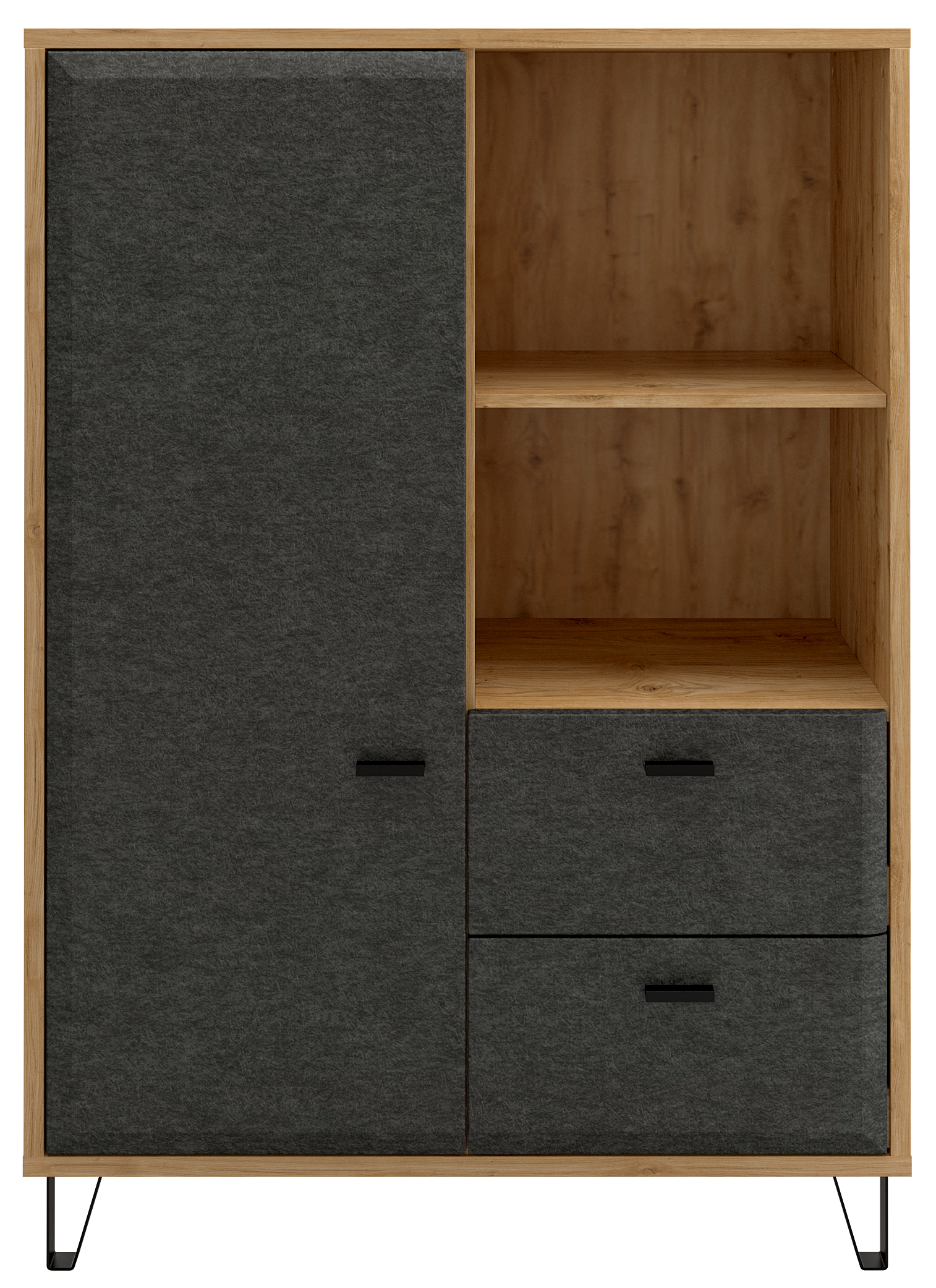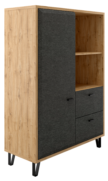 • Скругленная форма фасада в цвете "Графит" и  стильные металлические ножки позволят безупречно оформить гостиную комнату.