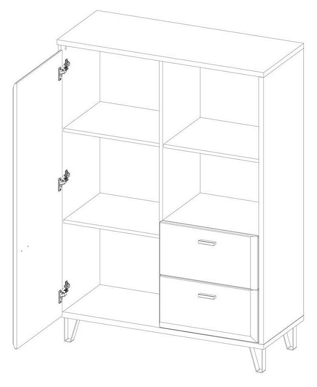 • С левой  стороны расположены 2-е полки за закрытой глухой дверью;