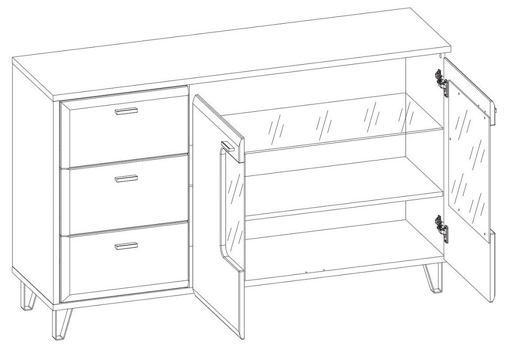 • 2 распашные  двери со стеклом, за которыми расположено 3 отделения;