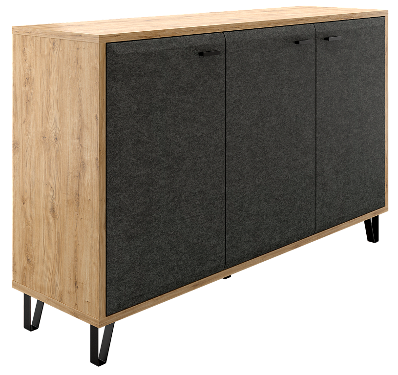 - Скругленная форма фасада в цвете "Графит" и стильные металлические ножки позволят безупречно оформить гостиную комнату;