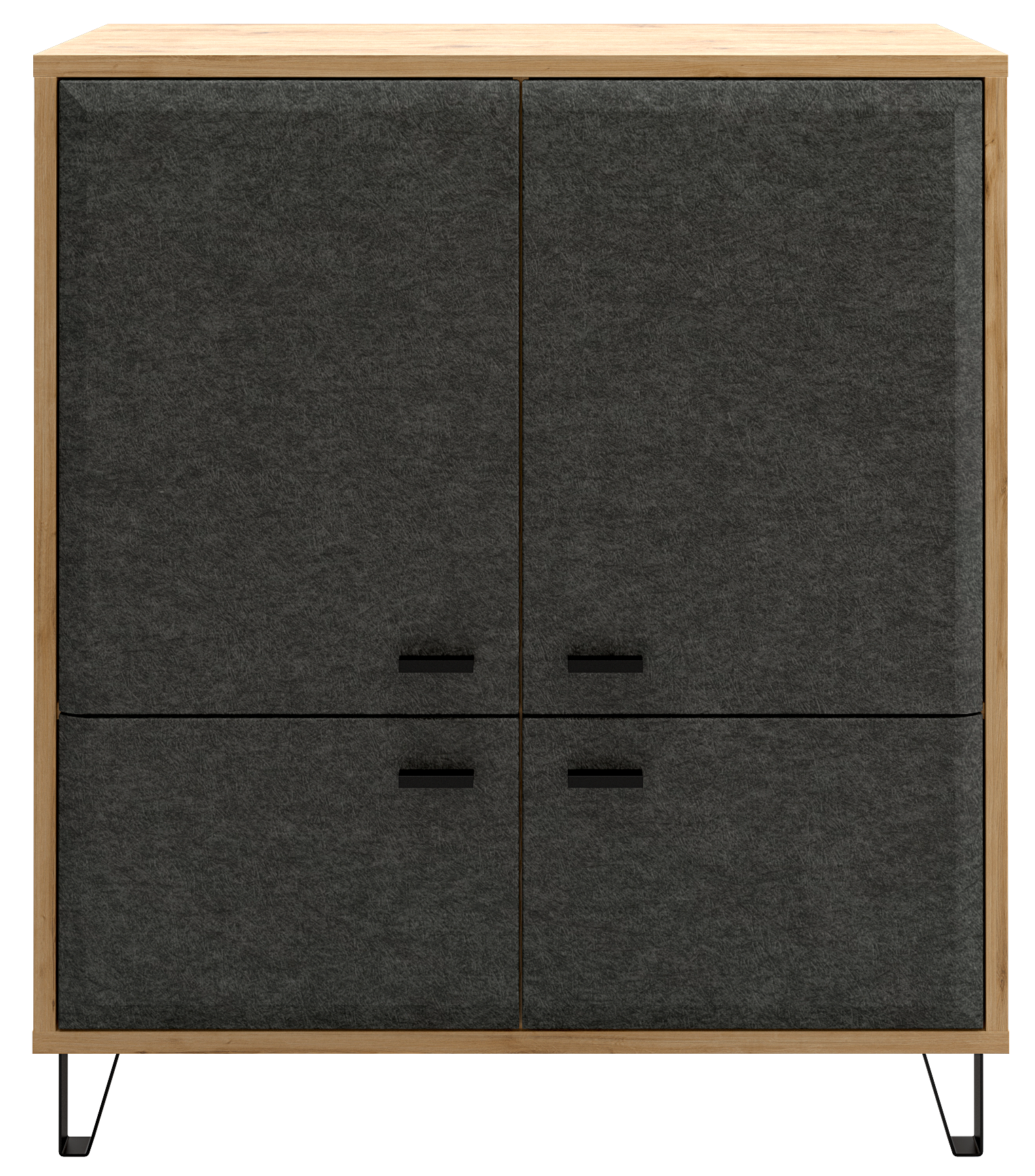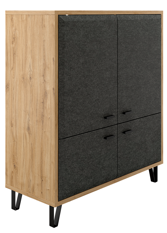 • Скругленная форма фасада в цвете "Графит" и  стильные металлические ножки позволят безупречно оформить гостиную комнату.