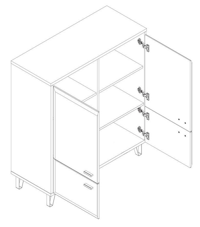 • За 4-мя распашными глухими дверьми расположены отделения с полками;