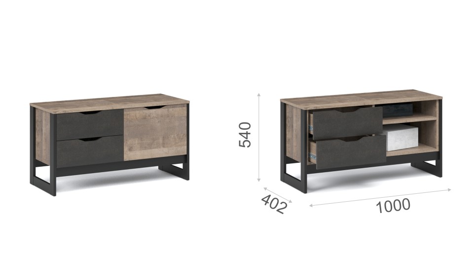 Тумба для обуви Стокгольм Дуб гранж песочный/Железный камень