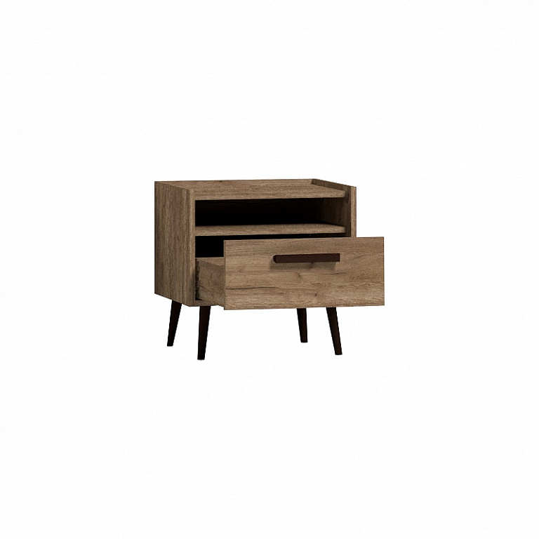 Элегантная и легкая тумба прикроватная 41 с 1-им выдвижным ящиком станет прекрасным дополнением к кровати коллекции Nature. Аккуратные черные опоры и ручки тумбы прикроватной выполнены из массива дерева. Они подчеркнут естественную красоту древесного декора и добавят мебели роскоши и «характера».