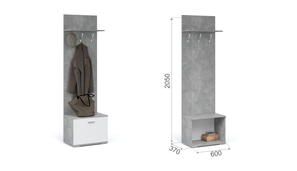 Тумба с вешалкой Виола Ателье светлый/Белый