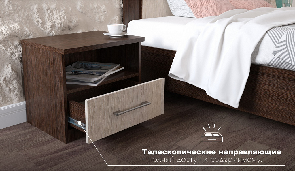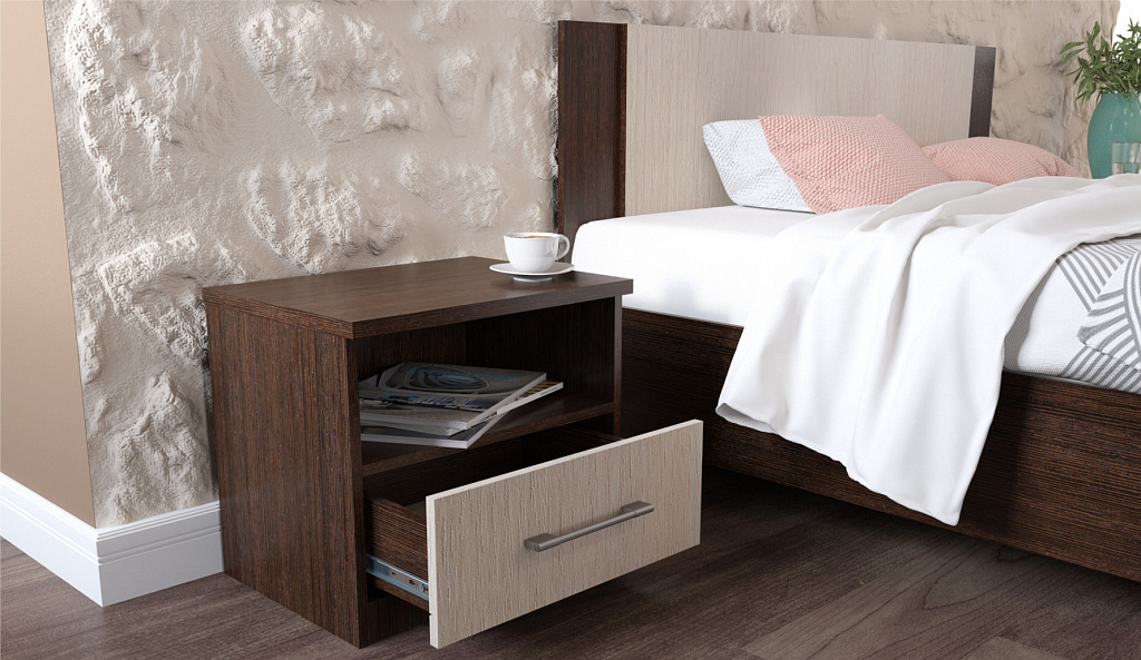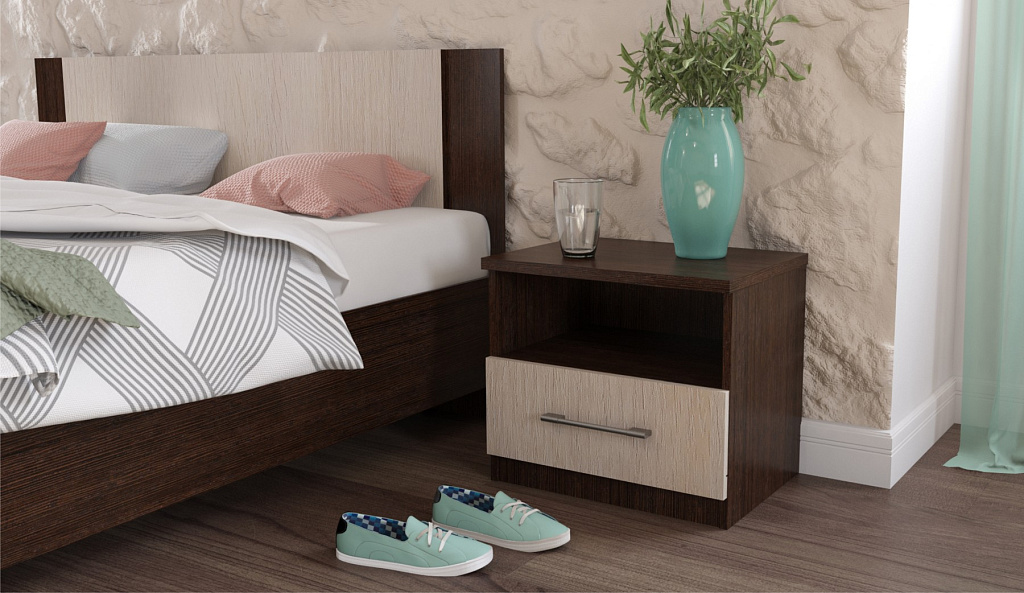Тумбочка прикроватная (комплект 2шт) Аврора Венге/Дуб молочный