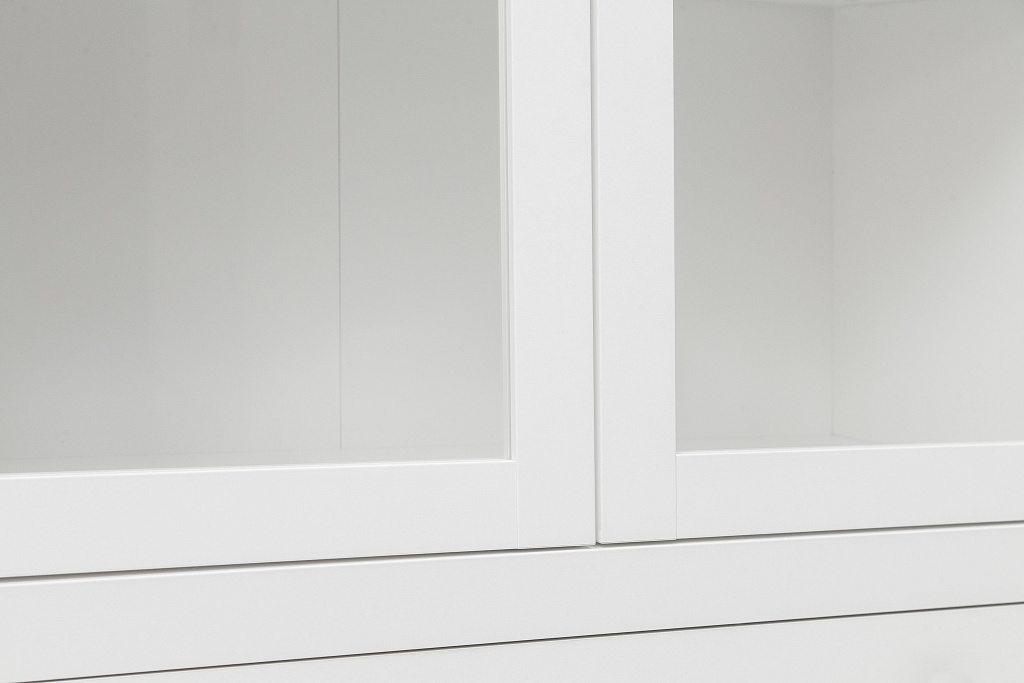 - Вместительная витрина; - За распашными дверями со стеклянной вставкой 4 отделения; - Выдвижные ящики на металлических направляющих.