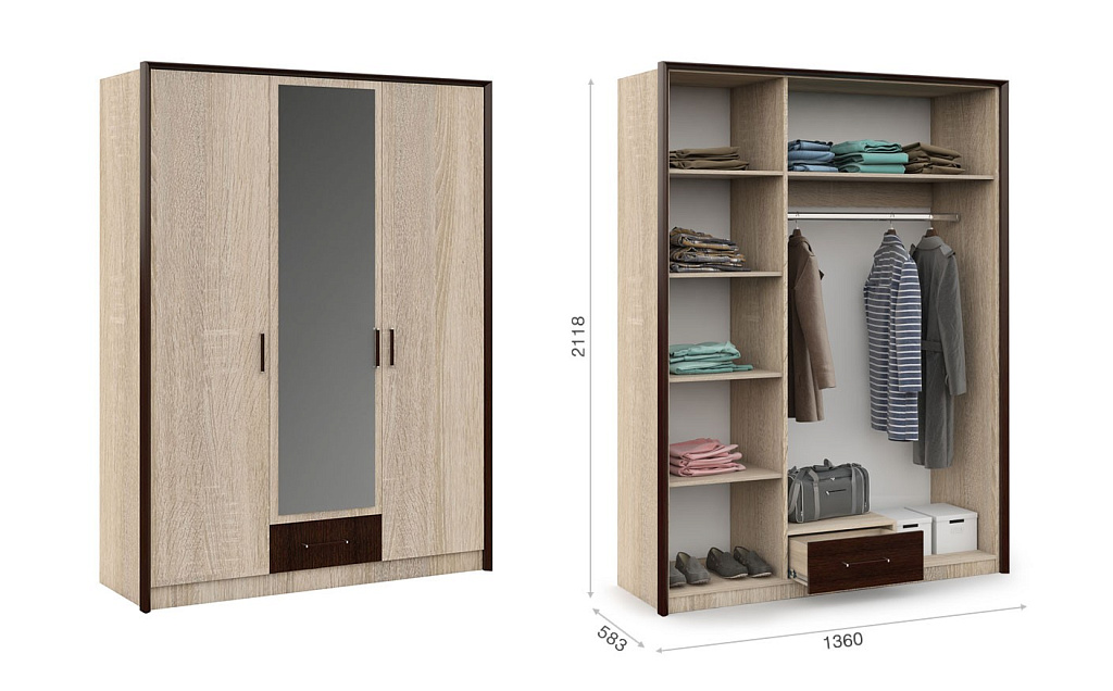 Шкаф 3-х дверный Эшли