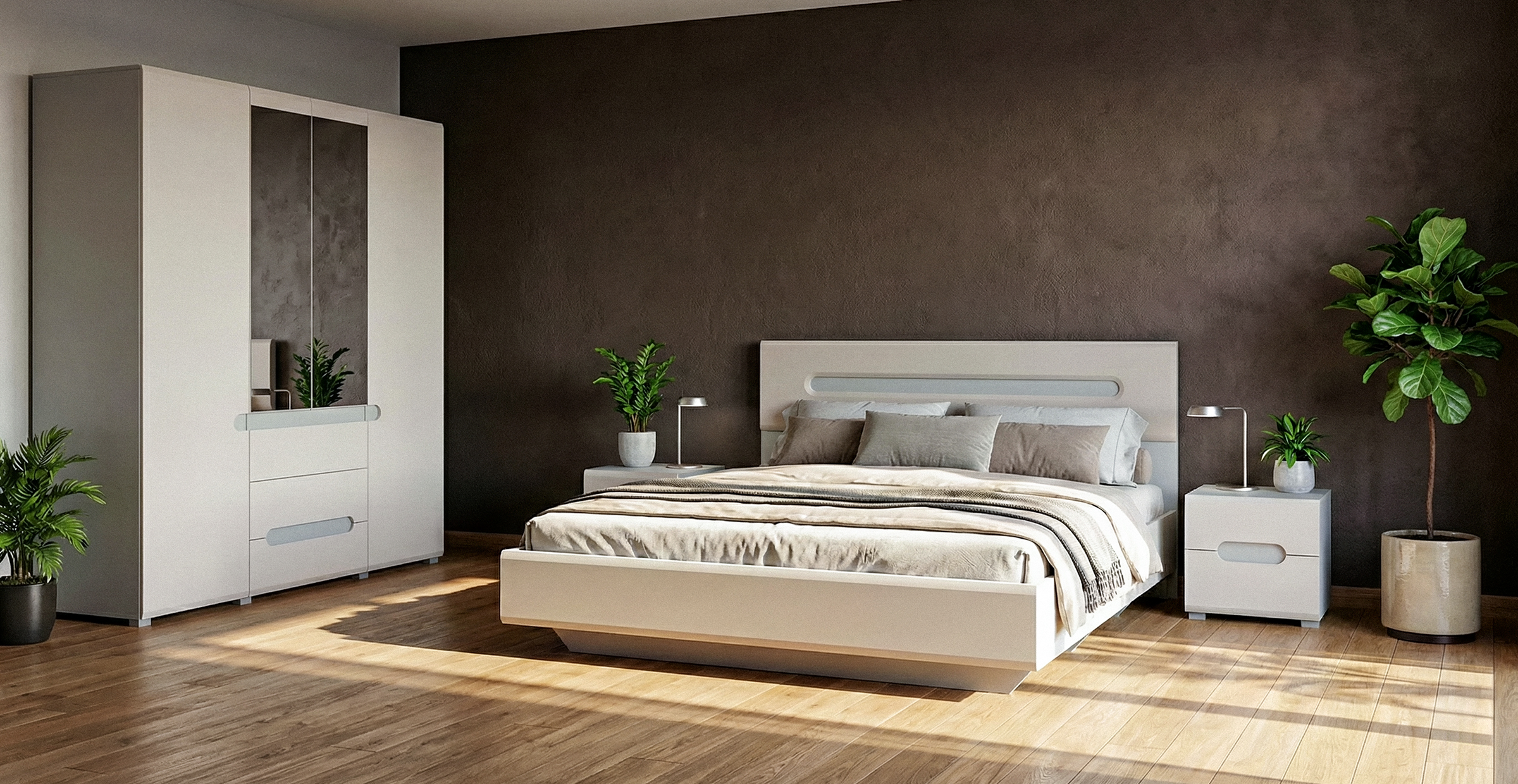 Коллекция Леонардо сочетает строгие прямые очертания и мягкие закруглённые формы. Такой дизайн отражает современные тенденции и создаёт атмосферу гармонии и уюта в интерьере.