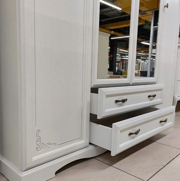 - дверцы и выдвижные ящики оснащены фигурными волнистыми ручками, удобными и стильными;